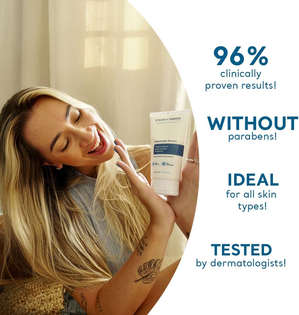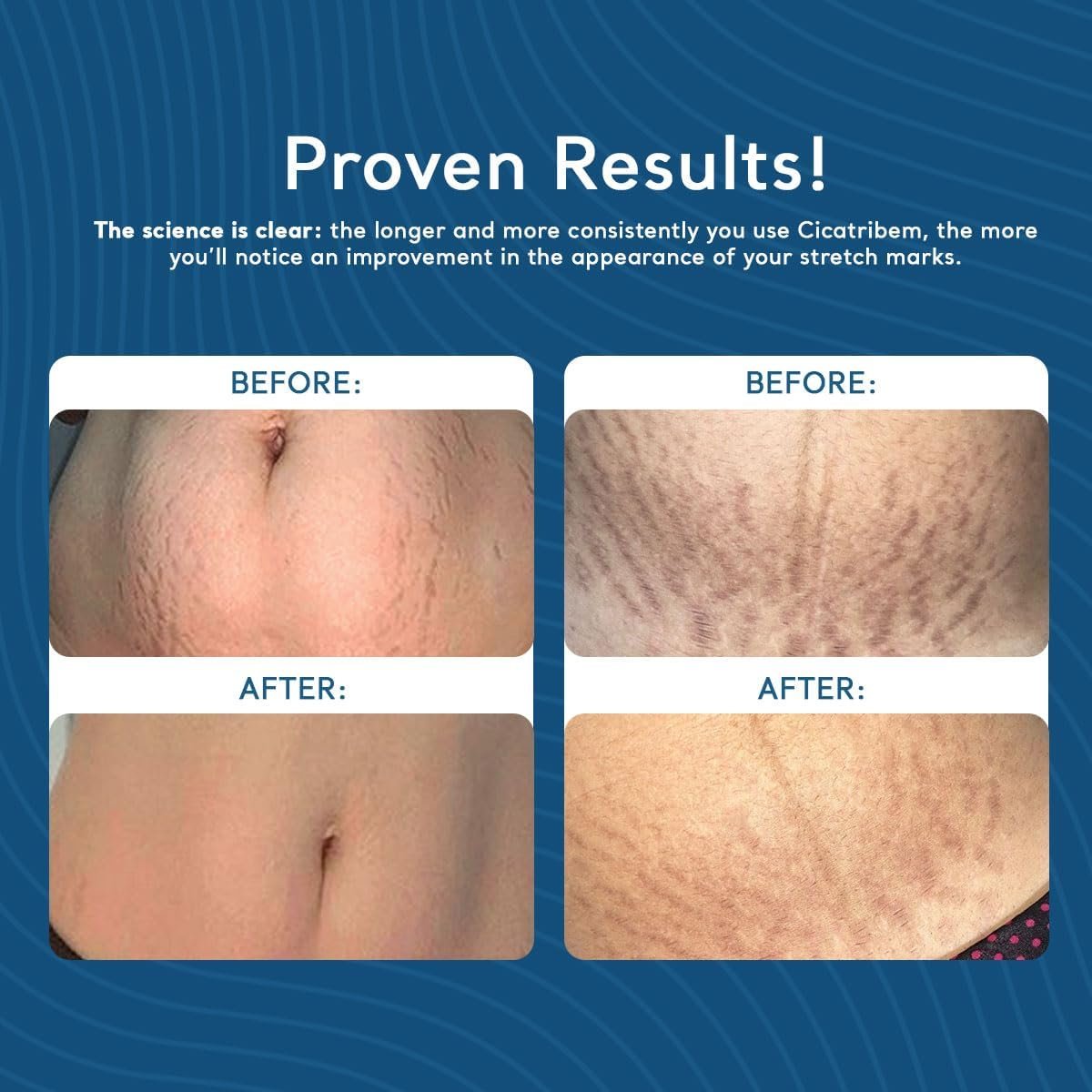• Reduz qualquer tipo de estria! Incluindo estrias roxas, estrias vermelhas e estrias brancas.